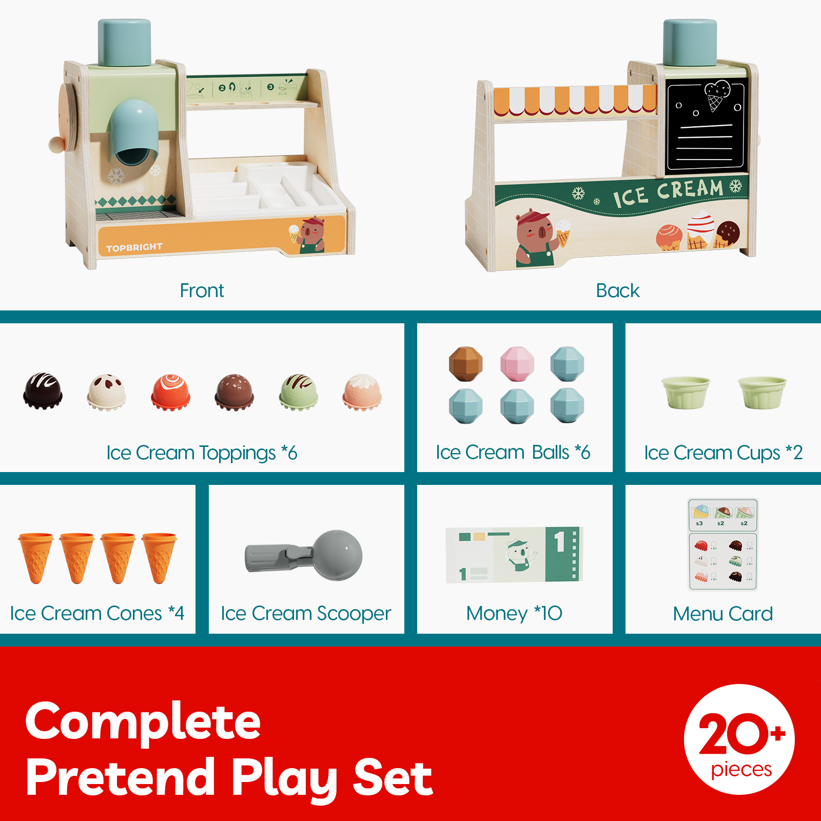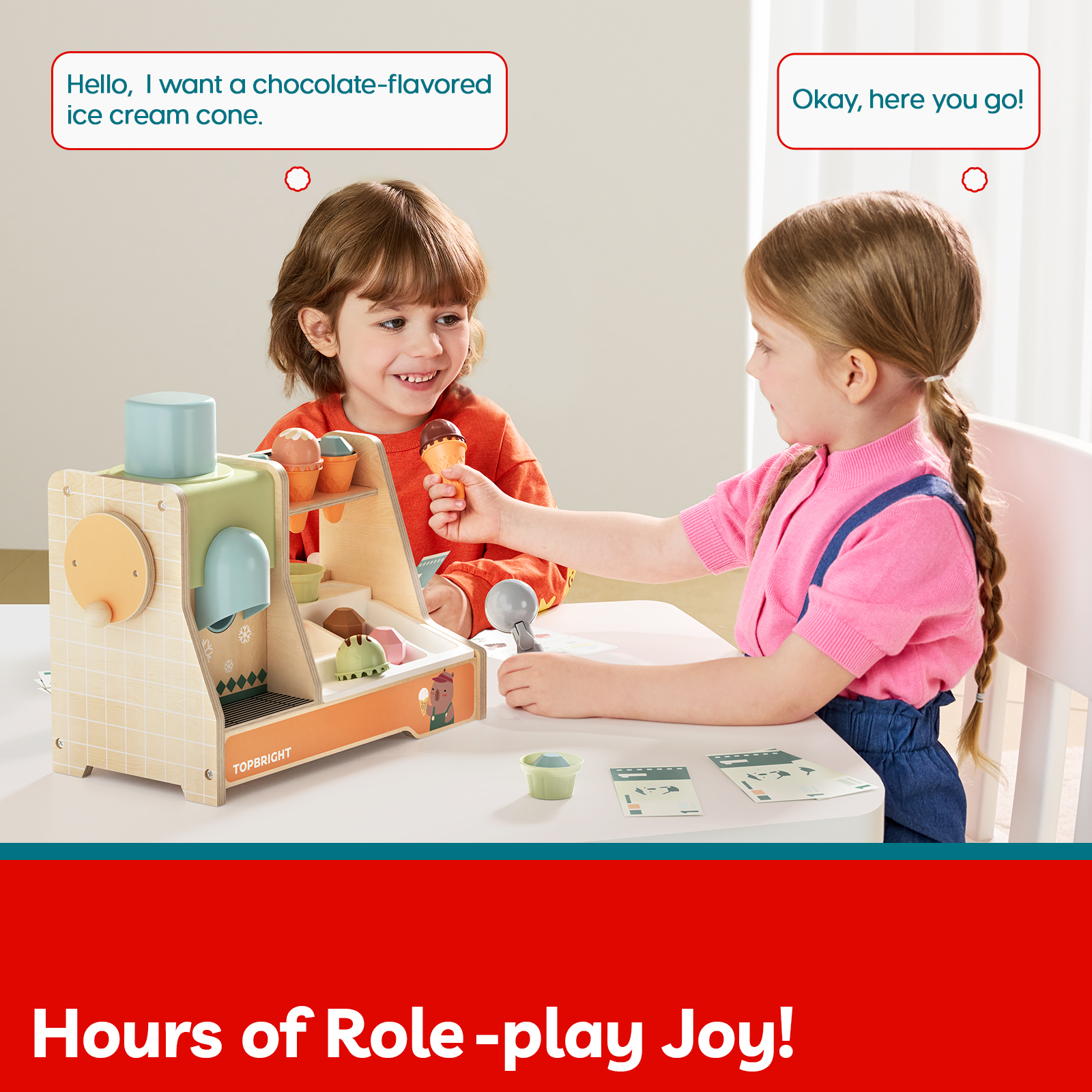 模擬雪糕店場景,鼓勵寶寶說故事、培養社交技能和想像。