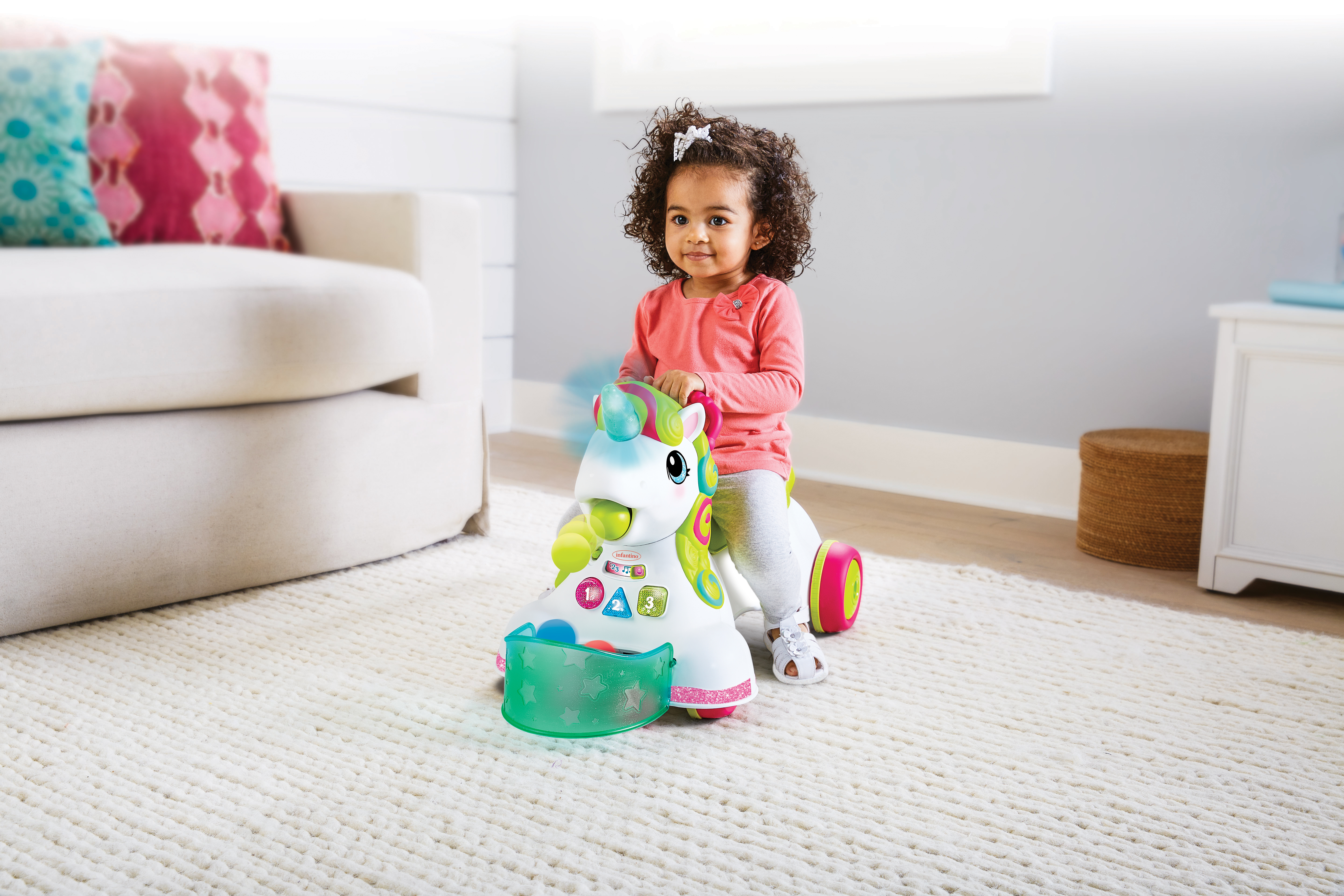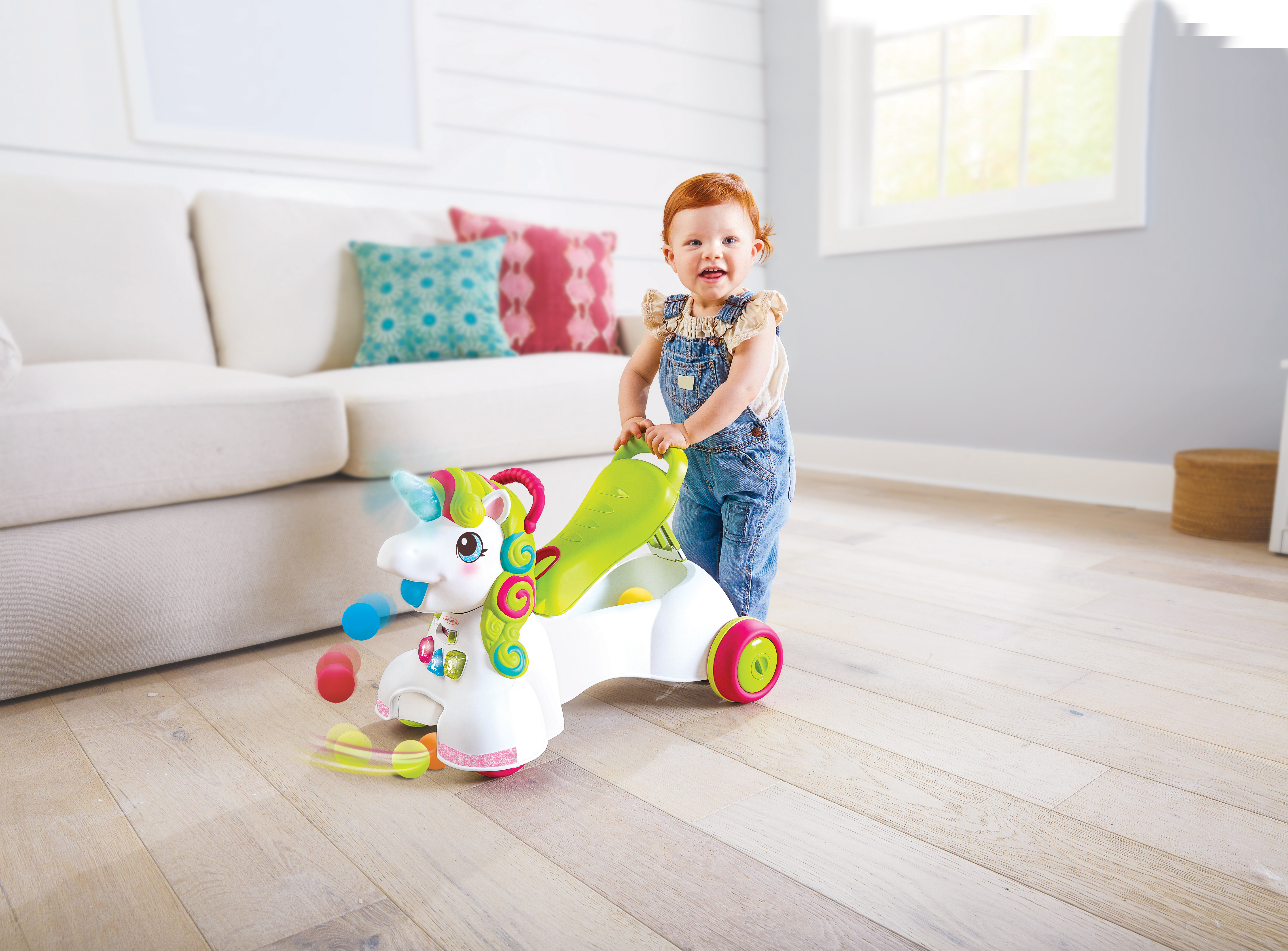 適合6至36個月嬰幼兒 可承重42磅 三合一設計︰可用作玩樂空間,坐椅及騎行 。 二十多個音樂、旋律、燈光及玩法。 可學習數字、圖案及形狀。 可裝上捕球器以方便拾回。 需要2粒AA電芯(不包括在內)。