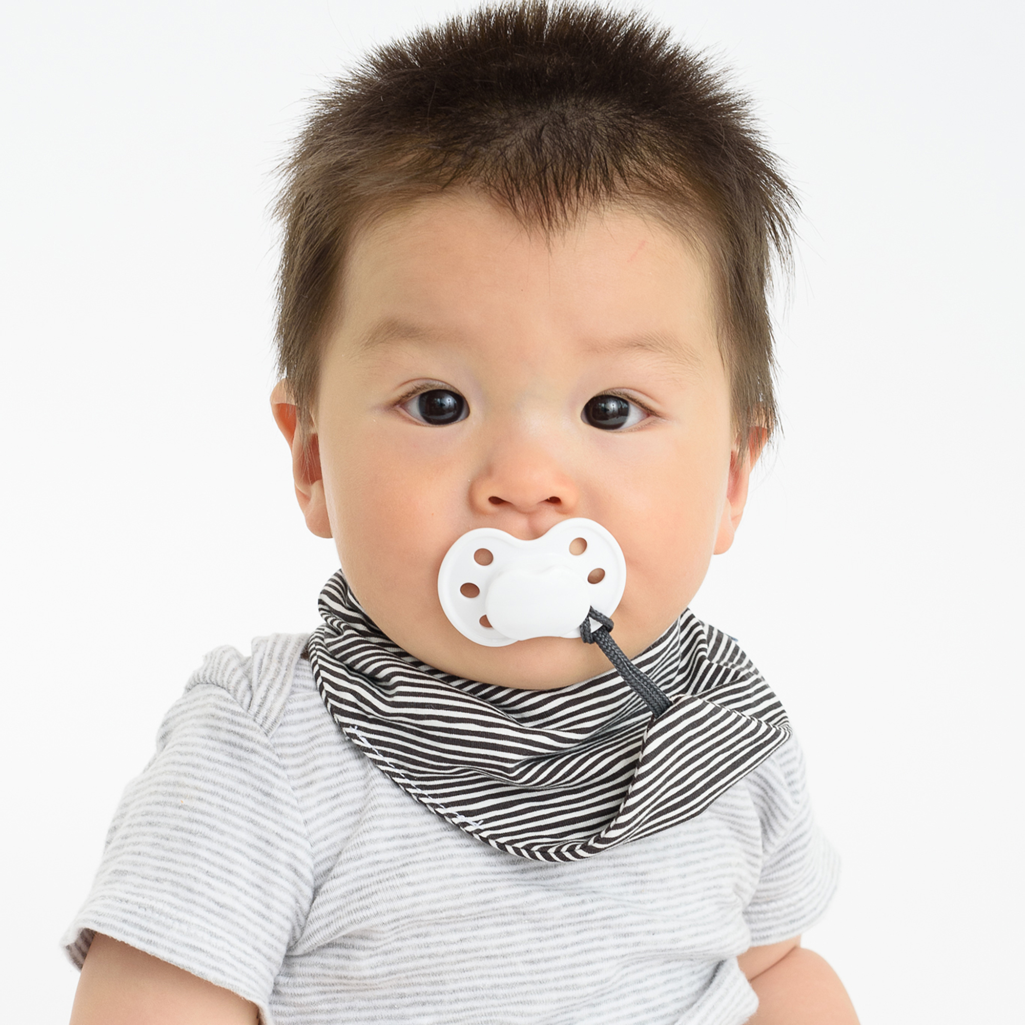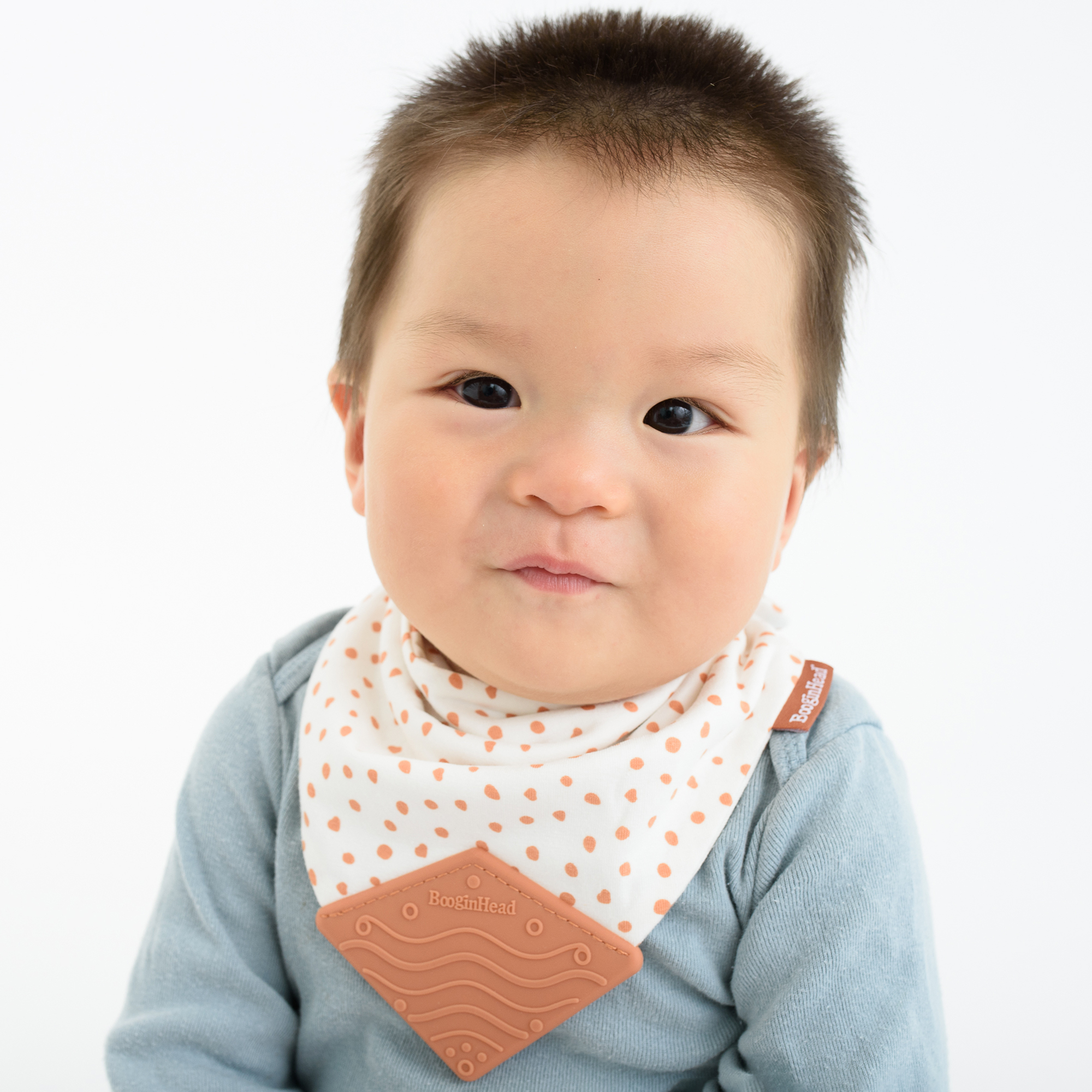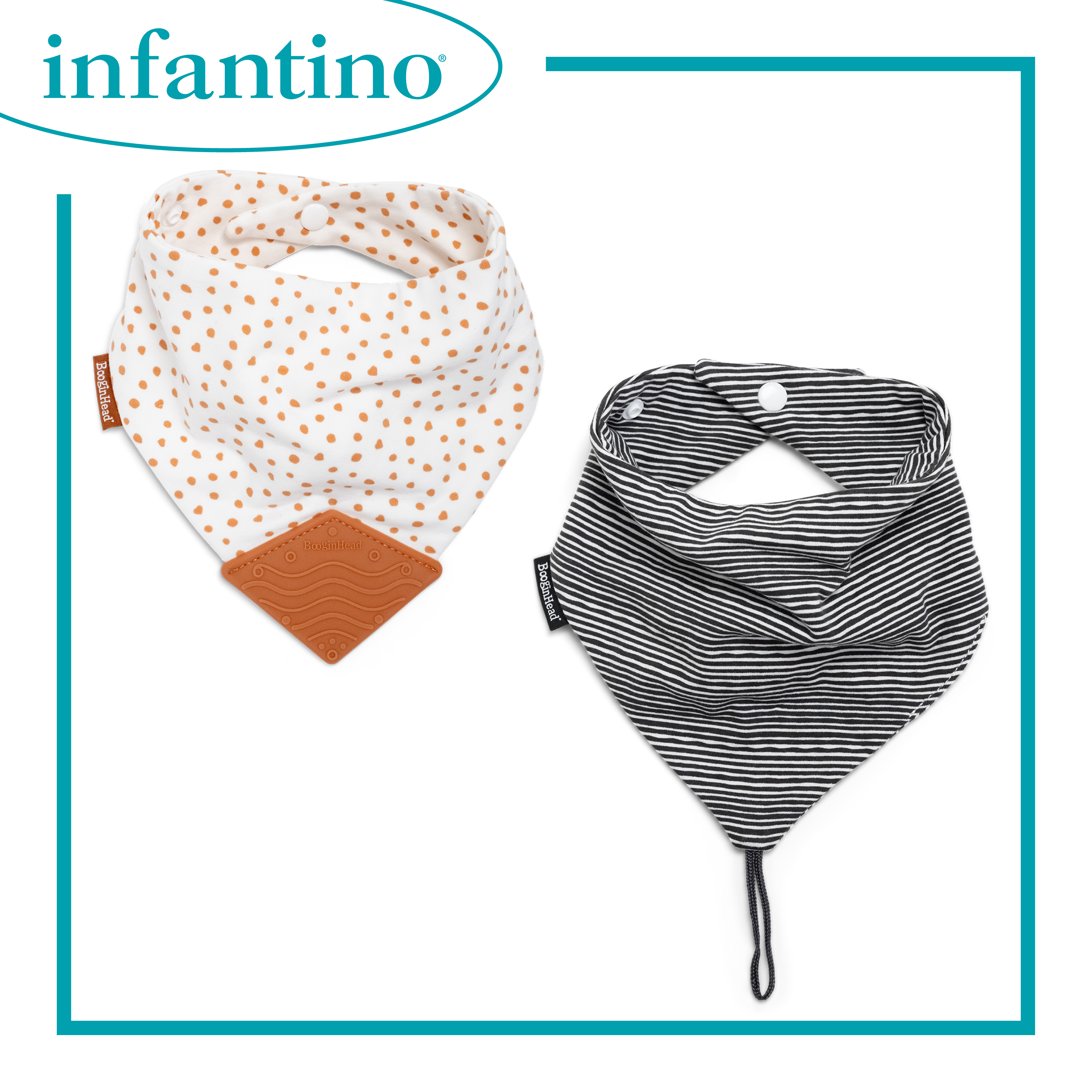 適合 6 個月或以上嬰幼兒使用 不含BPA 內含:1條牙膠三角圍巾及1條安撫奶嘴防掉圍巾 矽膠材質牙膠 兩條三角圍巾,採用柔軟、超強吸水棉製成 輕輕按摩寶寶牙齦 易於清潔,經久耐用 冷水機洗,輕柔模式。不可漂白。滴乾。不可熨燙。不可乾洗。