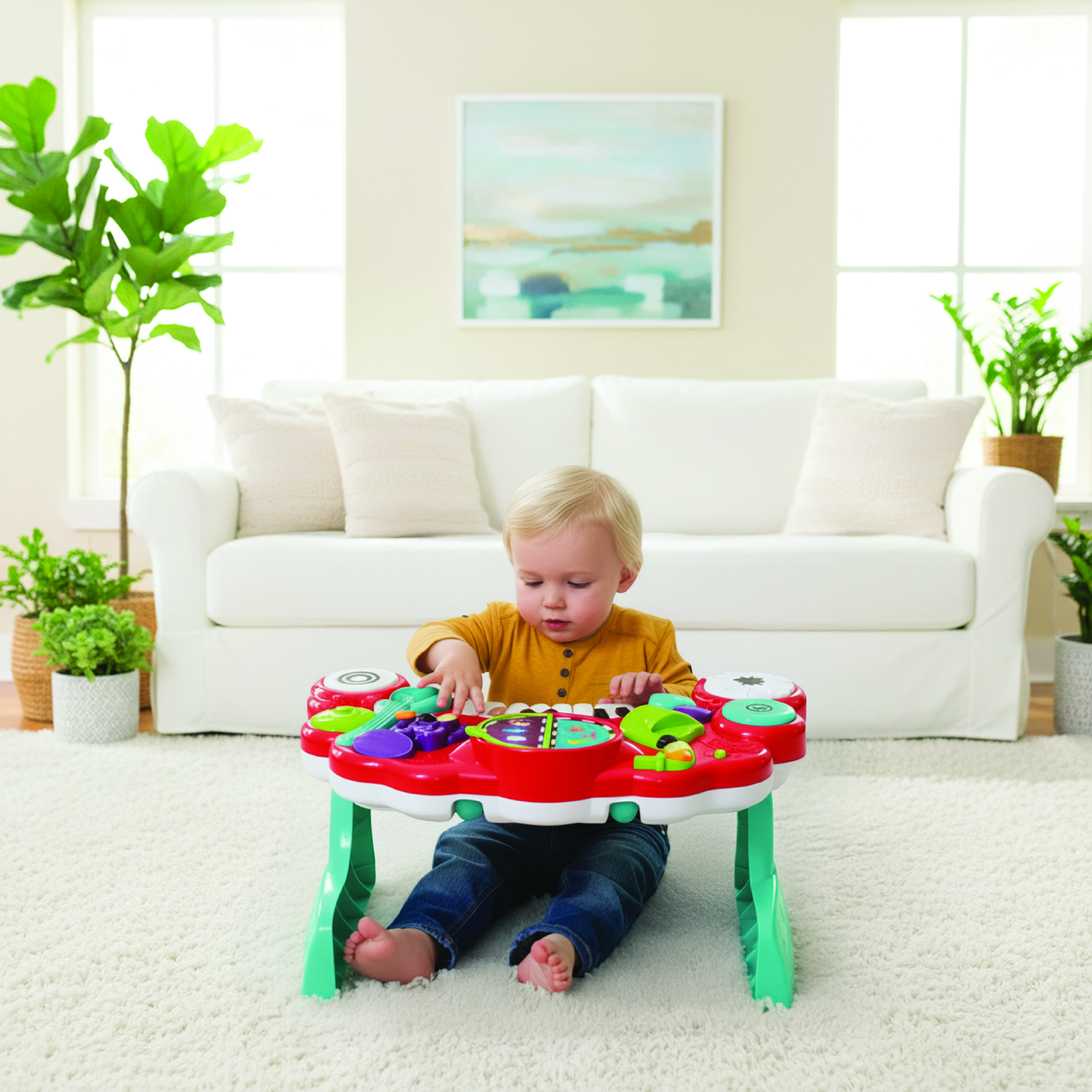 適合 12 個月或以上嬰幼兒使用 可拆卸支架 包含10種樂器 內建25首以上旋律和音效 這款互動音樂玩具組讓孩子從小就接觸音樂。套裝配備一個操作簡單的鍵盤,按鍵較大,專為小手設計,方便寶寶輕鬆創作旋律。此外,套裝還包含一本雙面歌本,可自動播放不同的歡快曲調,讓音樂體驗更加豐富。這款玩具組是培養孩子對音樂的熱愛和發展音樂才能的理想選擇。