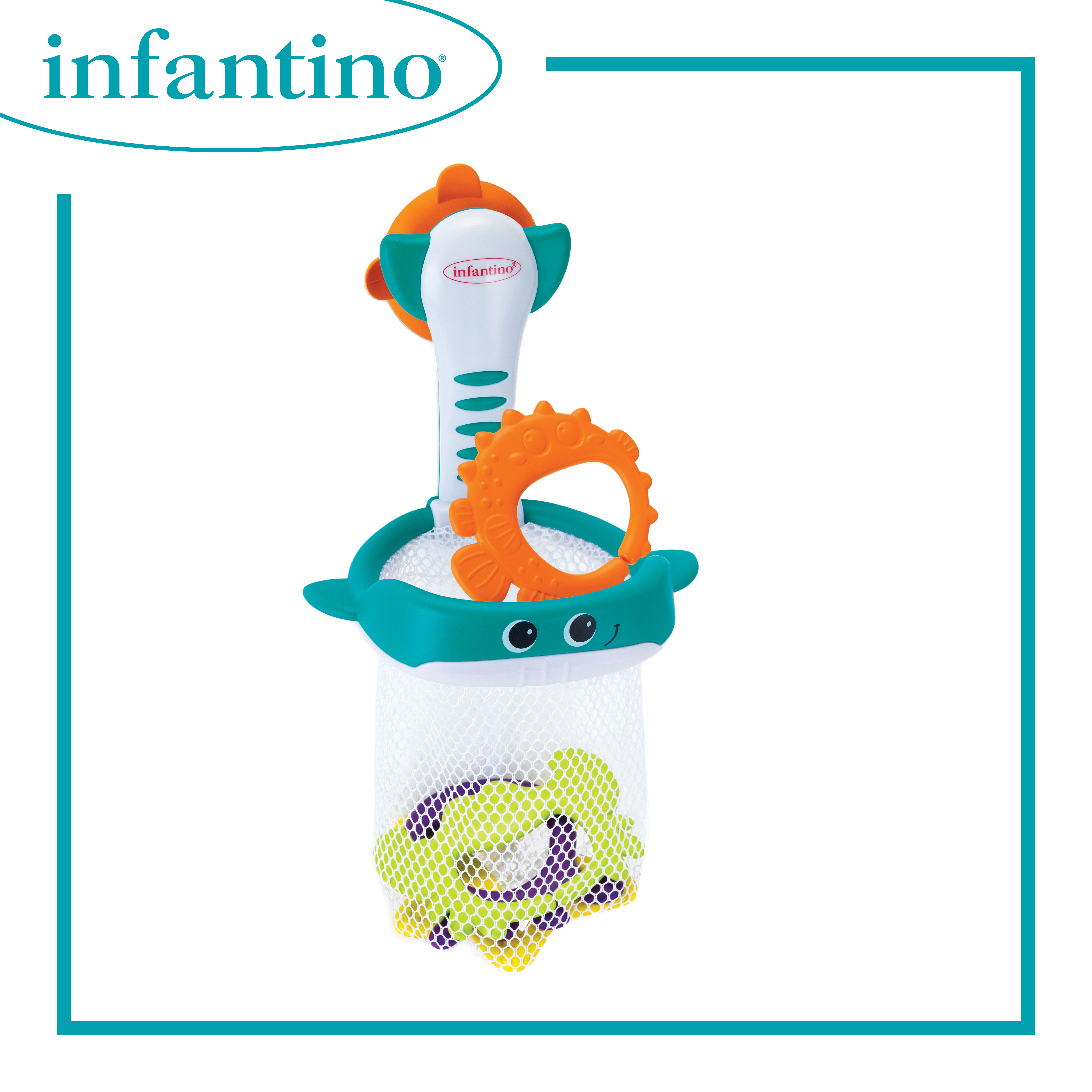 適合12個月以上嬰幼兒使用 適合沐浴及水中游戲玩耍 用作籃球籃或舀 包括4個海洋動物 容易清潔及涼乾