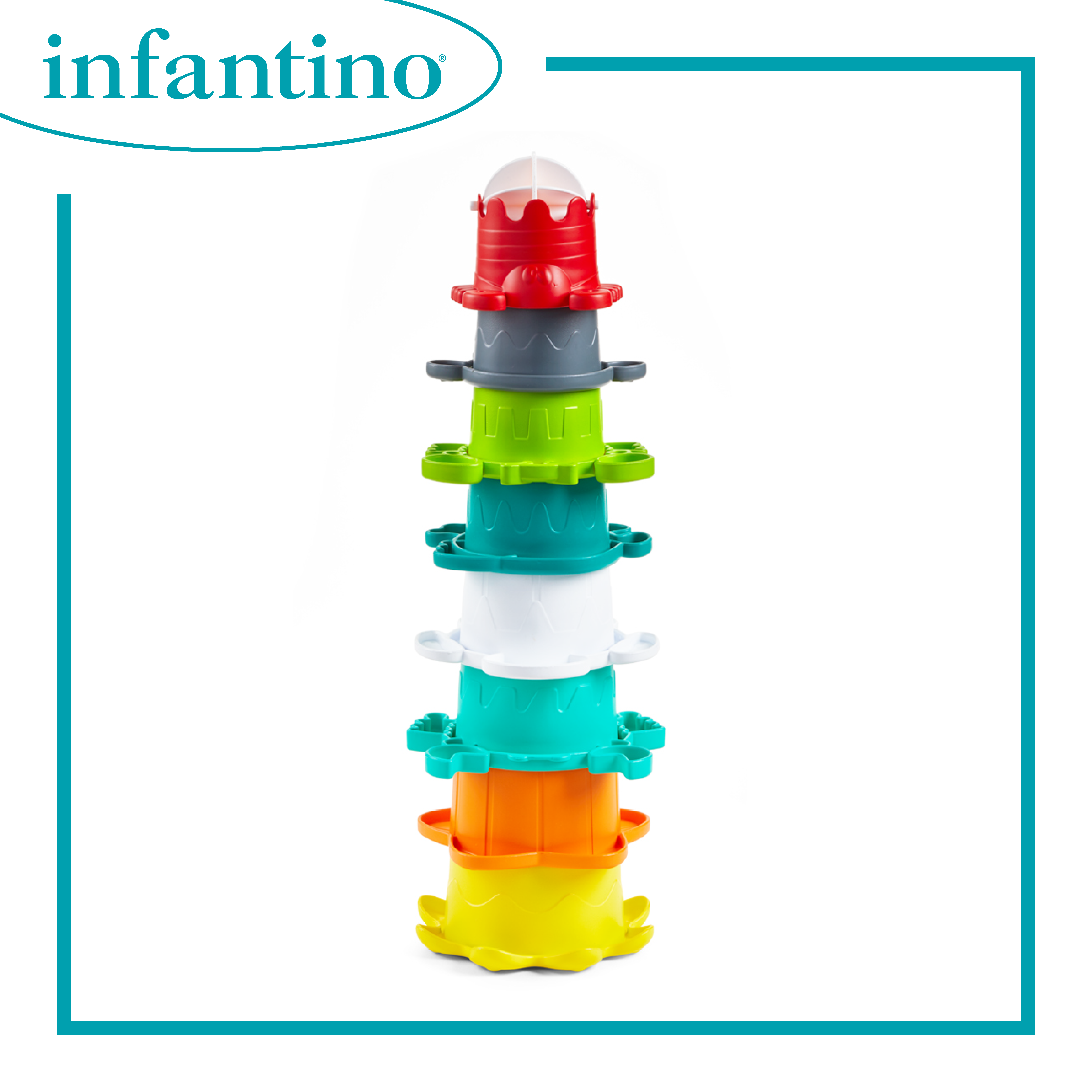 適合9個月以上嬰幼兒使用 配有七個疊疊杯 特色旋轉水輪 介紹數字概念