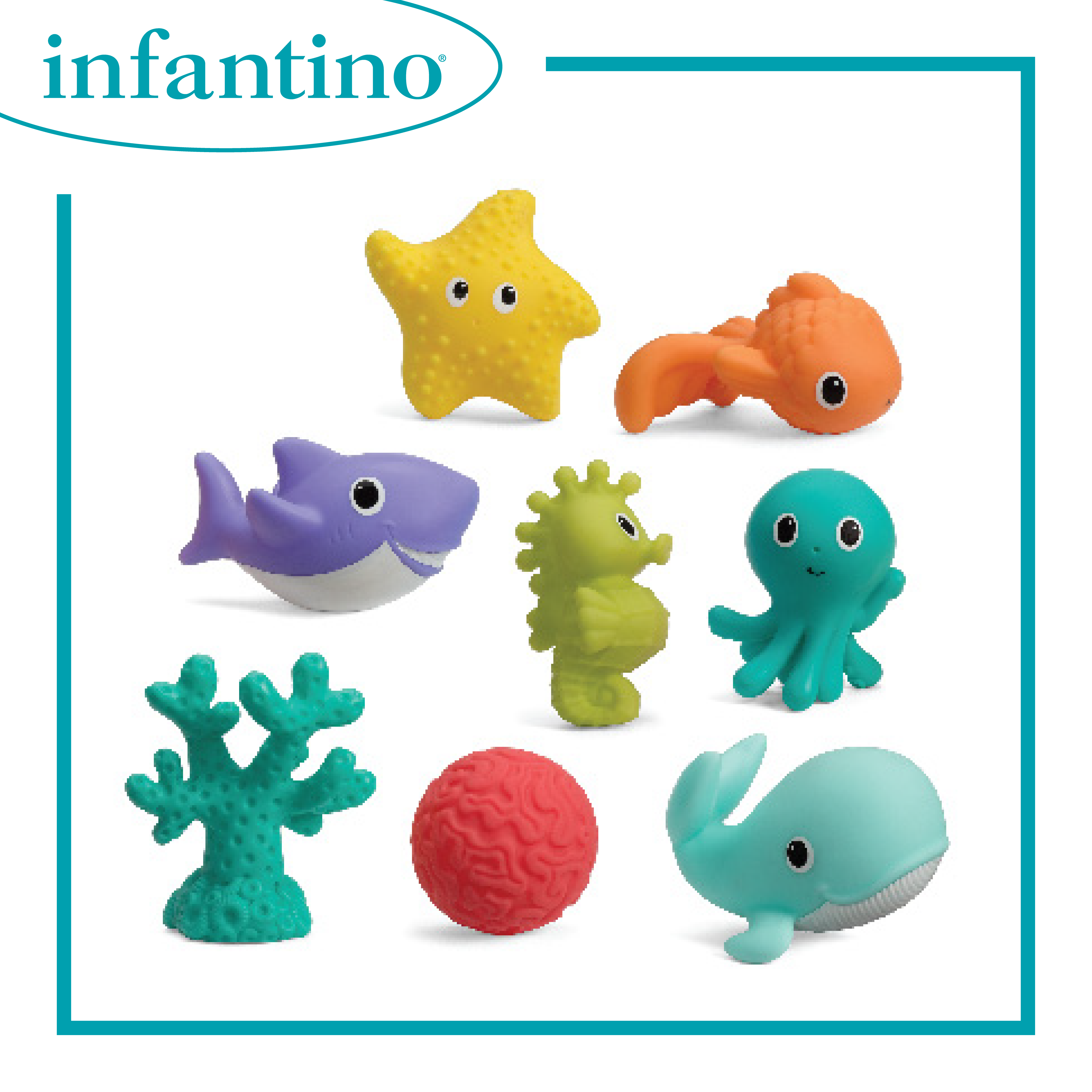 適合初生嬰兒使用 8個好玩的噴水器 海洋生物主題 有趣紋理適合小手抓玩 不含BPA