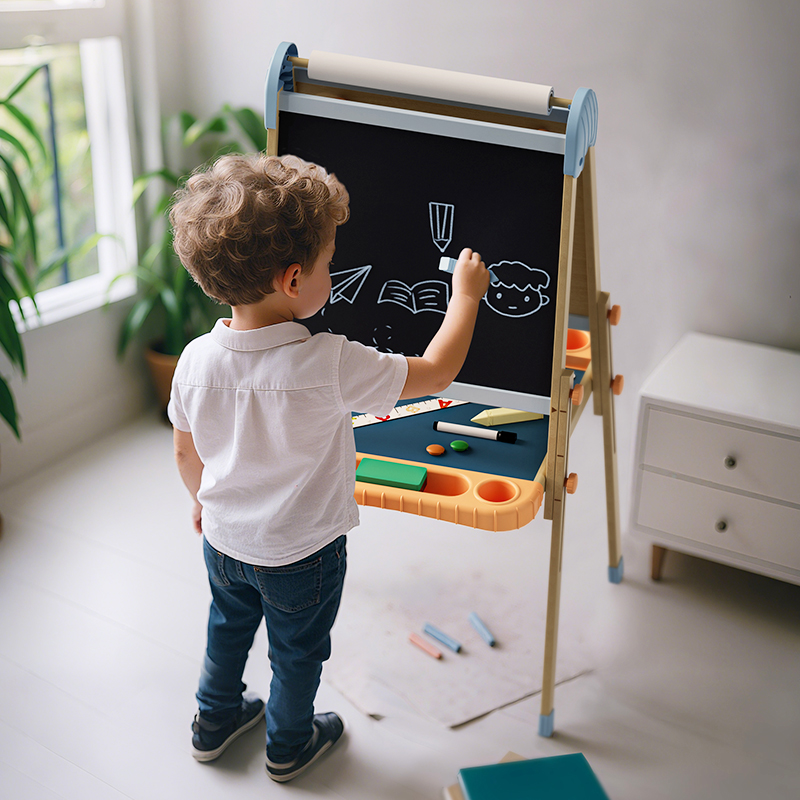 這款豪華直立式畫架,激發寶寶的想像力,培養他們的技能。雙面設計,一面是黑板,一面是白板,非常適合繪畫、書寫和互動課程。高度可調節,伴隨寶寶成長,是居家學習、藝術練習和親子時光的完美創意夥伴。