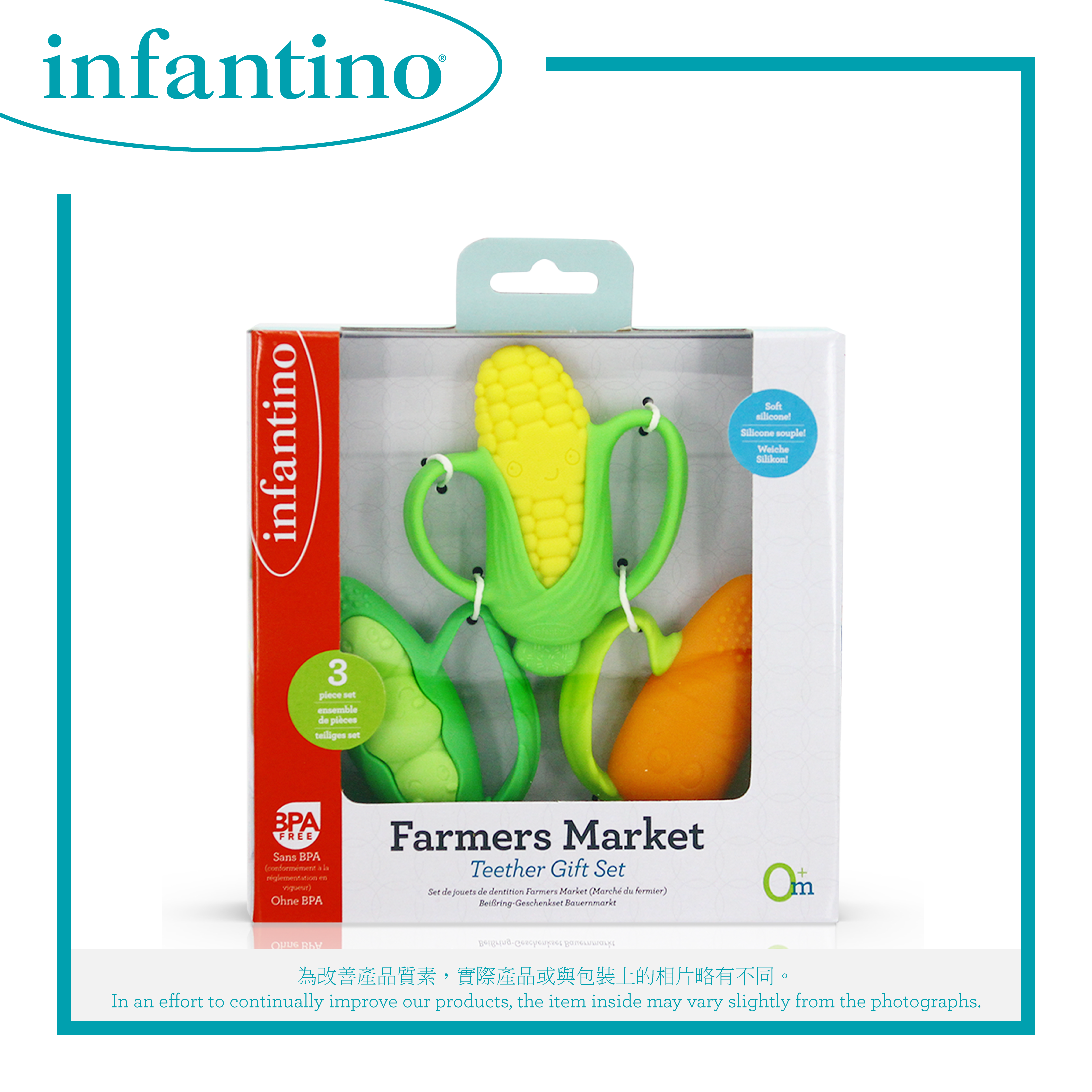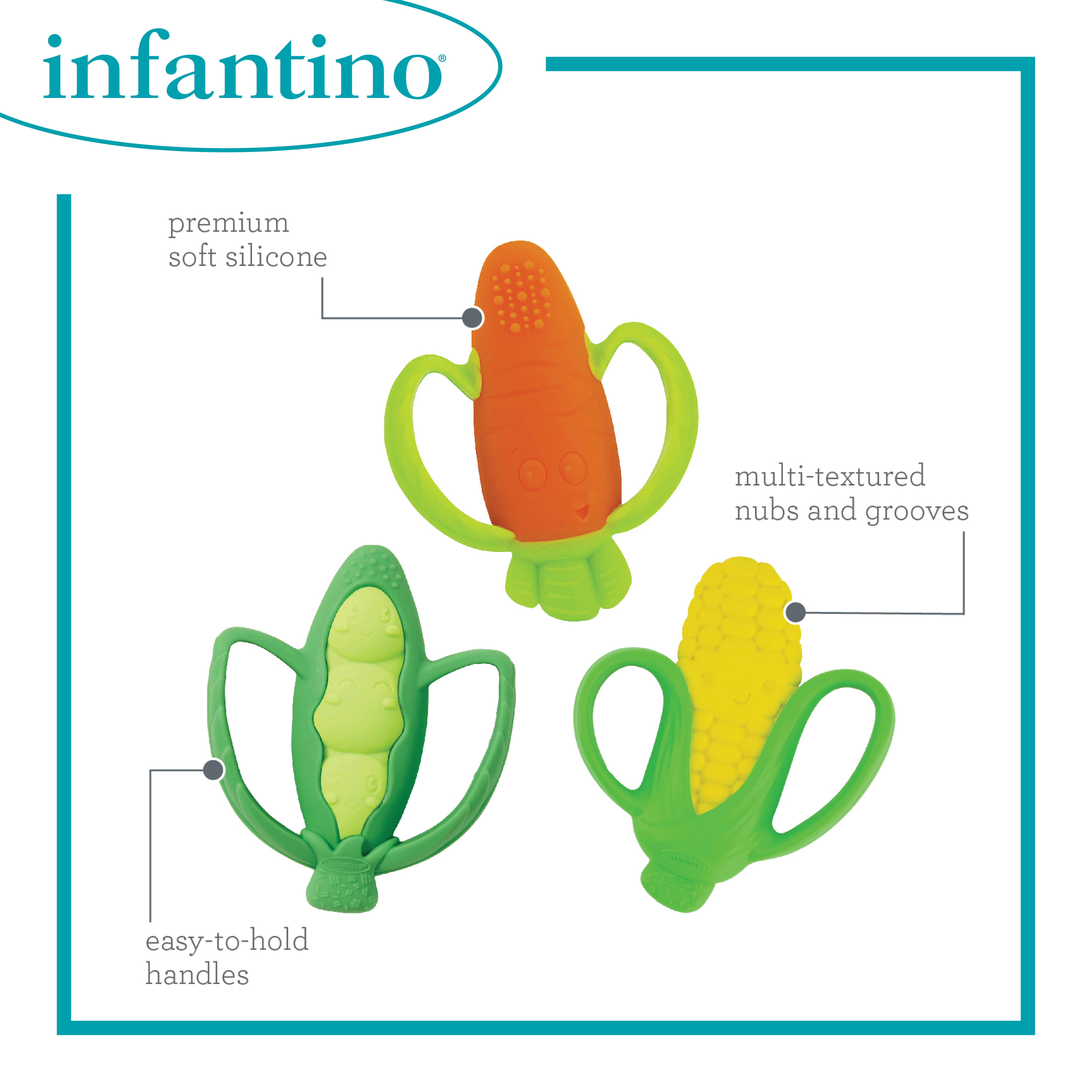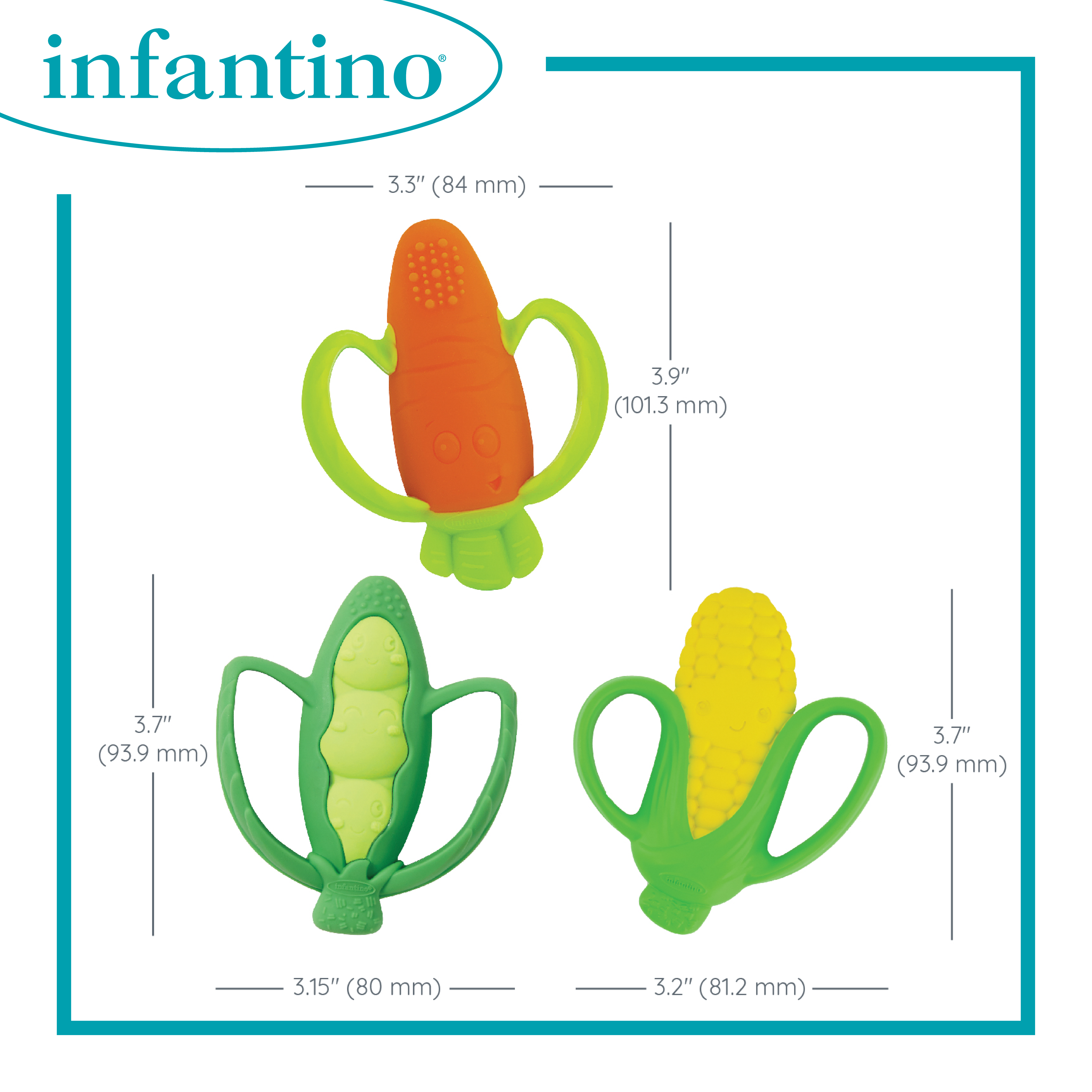 適合初生嬰兒使用 100% 不含 BPA 耐用矽膠 輕巧易握的手柄 優質柔軟矽膠,讓出牙無憂無慮 多紋理的小塊和凹槽可舒緩嬌嫩的牙齦 得意有趣的健康食物外觀 易於串連和擦拭乾淨 為改善產品質素,實際產品或與包裝上的相片略有不同。