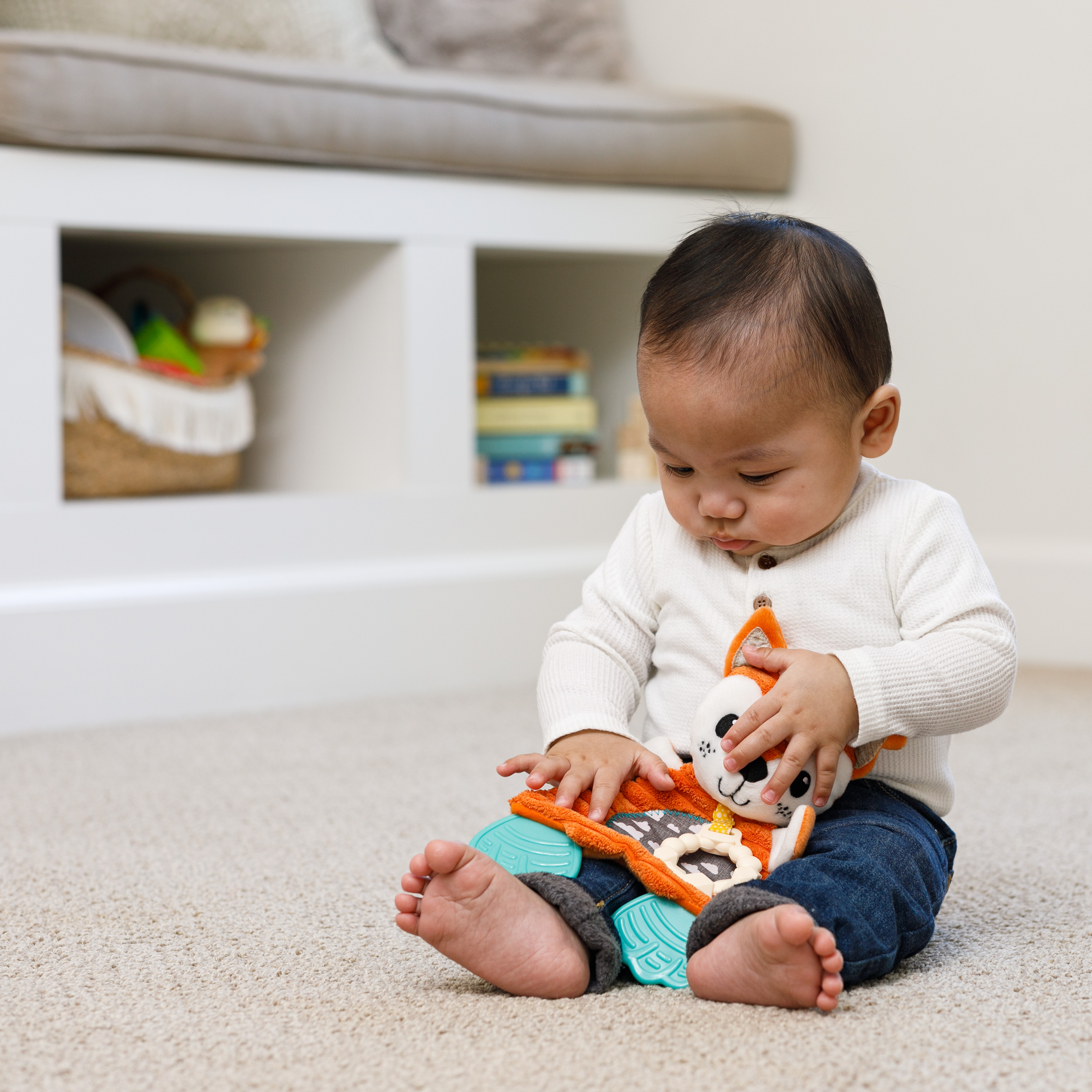 適合初生嬰兒使用 三種不同質感給寶寶咬吮 有效刺激口腔發展 不同色彩及圖案可豐富寶寶視覺 有趣的皺摺聲有助啟發探索